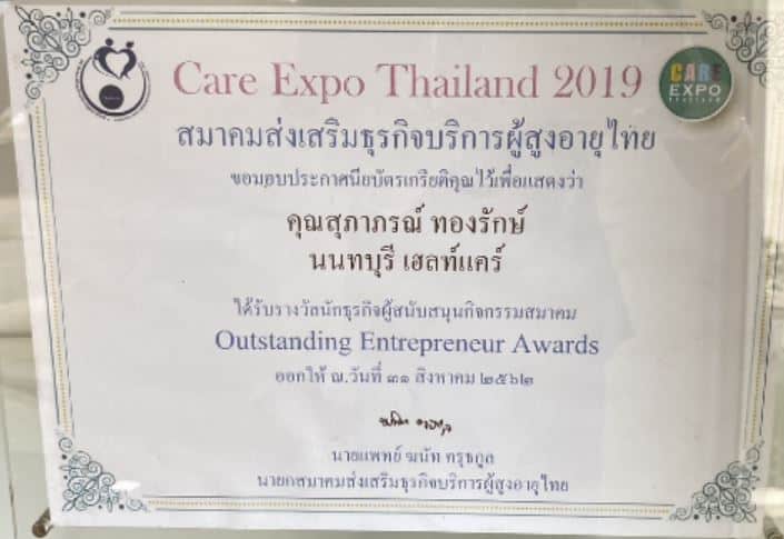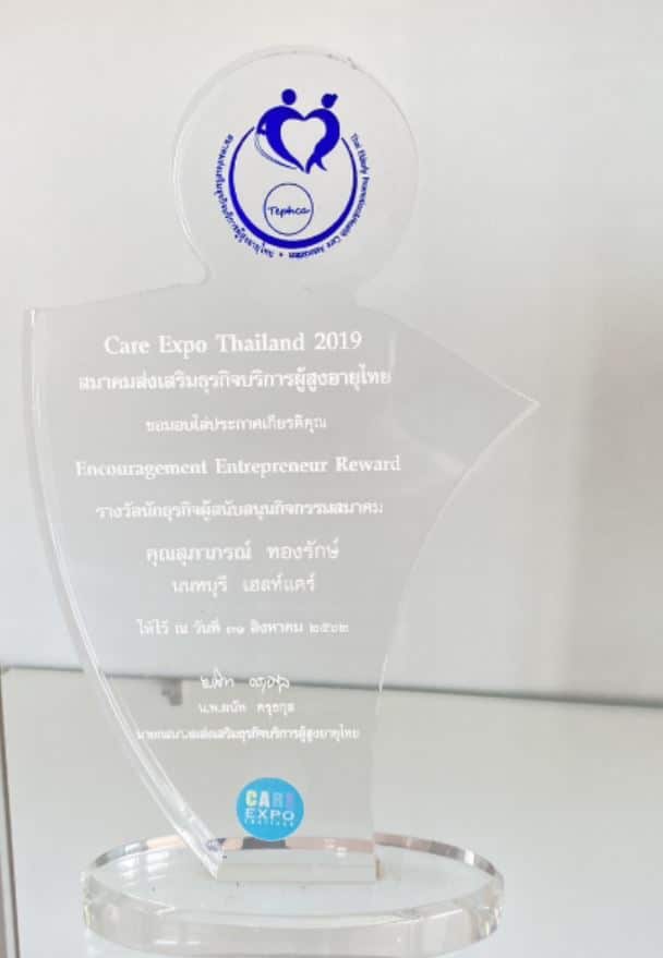 รางวัลนักธุรกิจสนับสนุนกิจกรรมสมาคม โดย สมาคมส่งเสริมธุรกิจบริการผู้สูงอายุไทย มอบให้แก่ผู้ประกอบการที่มีบทบาทพัฒนาวงการดูแลผู้สูงอายุอย่างต่อเนื่อง